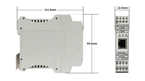 设备外形尺寸:(长,含接线端子)111.5mm*(宽)99.5mm*(高)22.5mm,其示意图如图所示