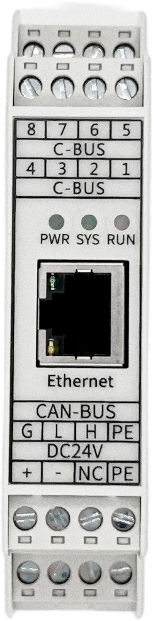 GCAN-GT-414模块集成1路DC 24V电源接口、4路标准CAN-Bus接口、1路标准太网接口,GCAN-GT-414模块接线端子排如图所示。