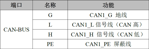 GCAN-GT-415模块CAN1-bus接口由1个4 Pin接线端子引出,有2个独立的CAN接口,其接口定义如表所示。