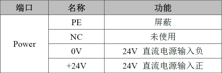 GCAN-GT-8321模块的电源接口由1个4 Pin插拔式接线端子引出,其接口定义如表2.1所示。