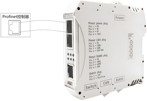 图4.1 GCAN-GT-8321-Prog Profinet网关与Profinet控制器连接