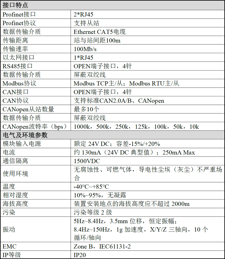 ● 2个Profinet总线接口(RJ45),支持从站级联;