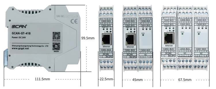 GCAN-GT-418-3系列:(宽)22.5mm;GCAN-GT-418-6系列:(宽)45mm;GCAN-GT-418-9系列:(宽)67.5mm。