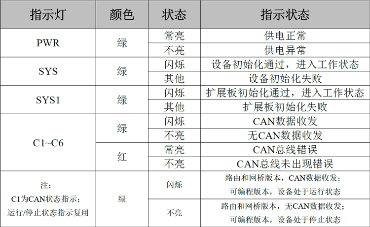 表2.6 GCAN-GT-418-6系列模块指示灯状态