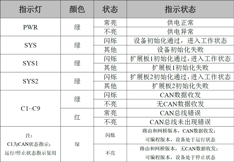 2.5.2 GCAN-GT-418-9/9R/9C系列指示灯状态