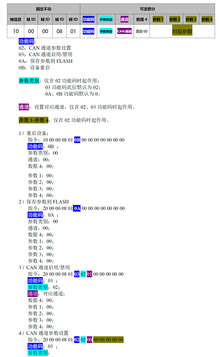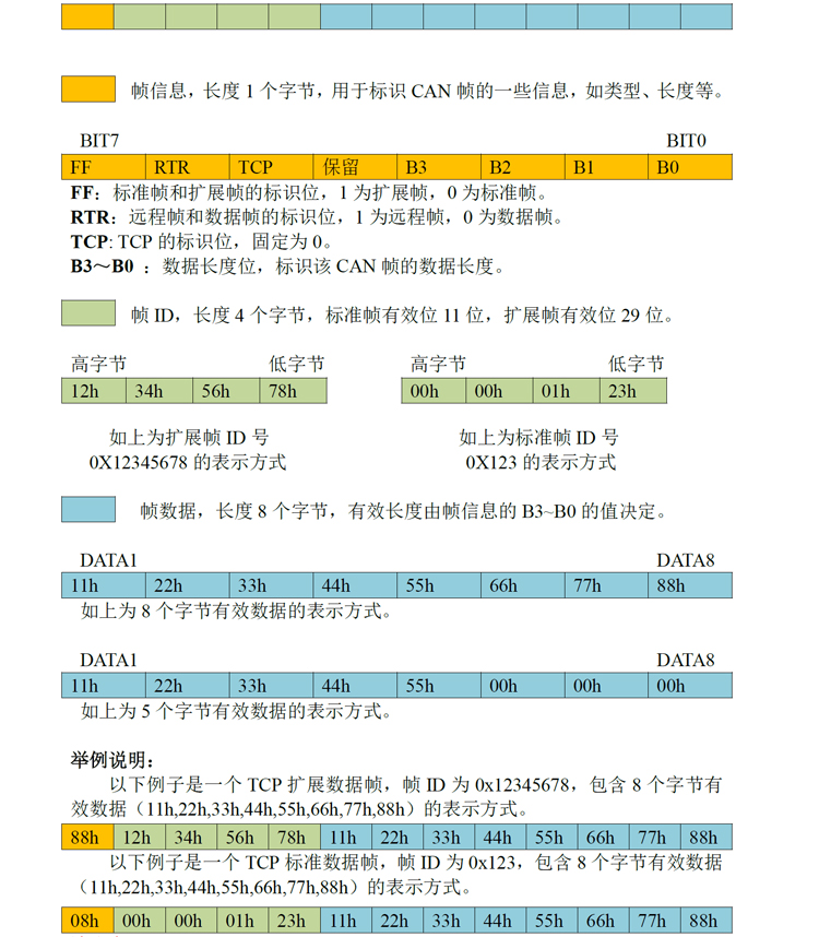 一条CAN 帧包含13 个字节,不足13 字节,模块会自动将不足位填补齐。