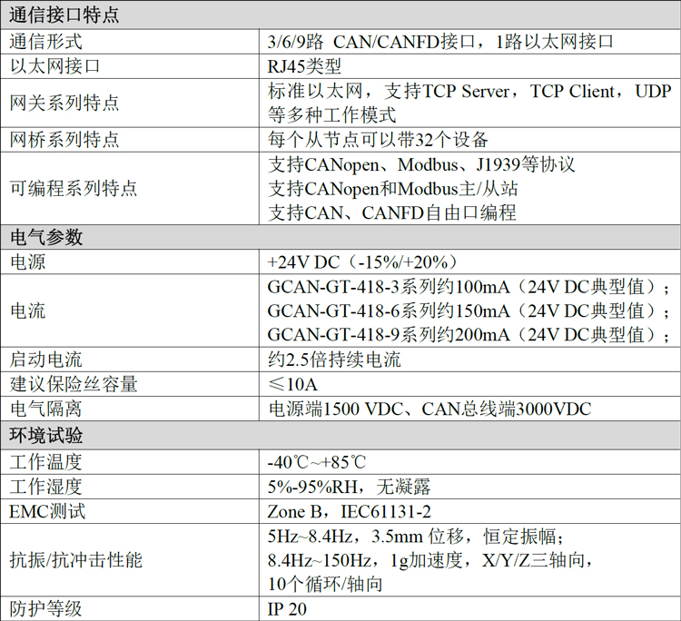 ● GCAN-GT-418网关系列产品。以太网具有TCP Server,TCP Client,UDP等多种工作模式,是高性能的工业级以太网与CAN/CANFD的数据转换设备;