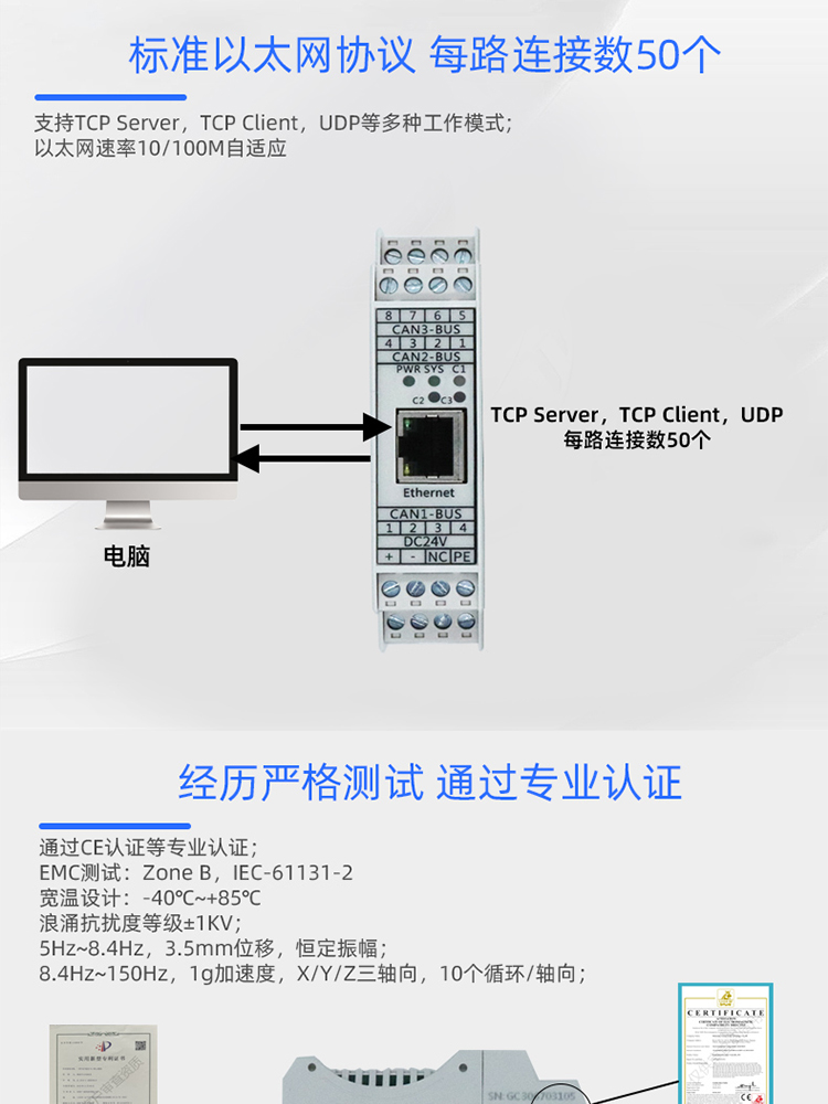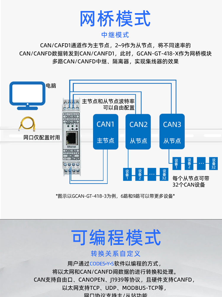 GCAN-418 以太网-CANFD网关/网桥/可编程网关