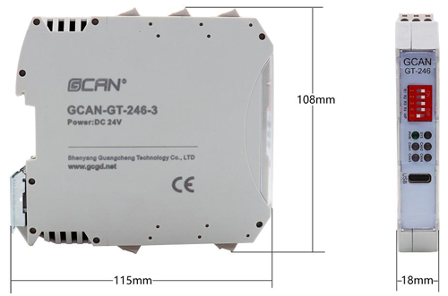 GCAN-GT-246系列尺寸相同:(长)115mm*(宽)18mm(高)108mm;如图2.1所示: