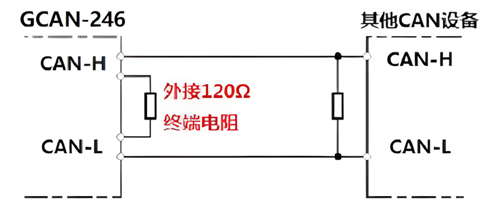 GCAN-GT-246模块接入CAN总线时仅需要将CAN_H连CAN_H,CAN_L连CAN_L即可建立通信。