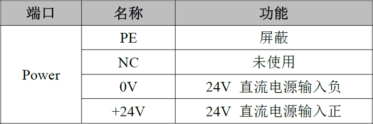 GCAN-GT-8221模块的电源接口由1个4 Pin插拔式接线端子引出,其接口定义如表2.1所示。
