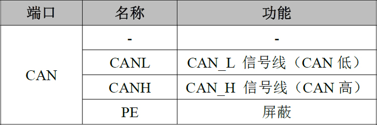 GCAN-GT-8221模块CAN-bus接口由1个4 Pin接线端子引出,可以用于连接1个CAN-bus网络或者CAN-bus接口的设备,其接口定义如表2.2所示。