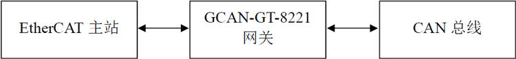 GCAN-GT-8221-CAN,EtherCAT主站,可以通过8321网关,与CAN网络进行通讯,CAN支持CAN2.0A和CAN2.0B帧格式,符合ISO/DIS 11898规范;EtherCAT总线主站的EtherCAT接口连接8221的EtherCAT接口,8221的CAN接口连接CAN总线接口。