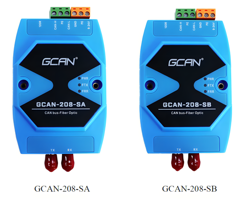 The GCAN-208-S series module is specifically designed for the networking of fire control hosts, and can convert CAN bus data into optical signals for transmission through optical fibers. By using the GCAN-208-SA and GCAN-208-SB modules in pairs, users can easily extend the communication distance of the CAN bus, up to 13 kilometers (which can be extended by adding relays).