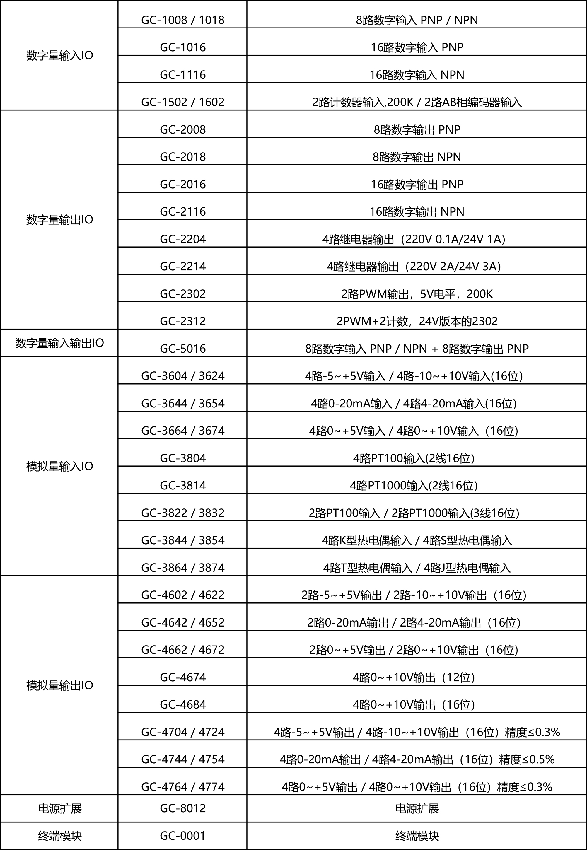 GCAN-IO-8100 Modbus IO总线耦合器可扩展模块包括: