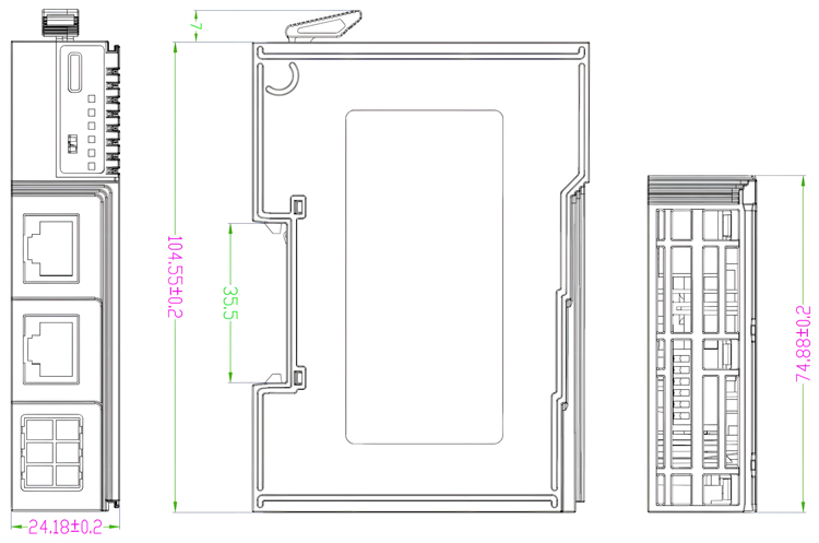 ● 安装尺寸:Din35 导轨;