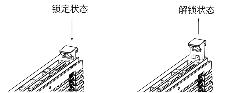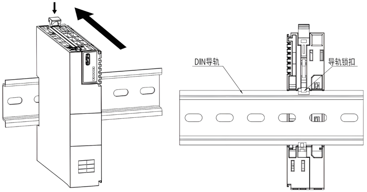● 如果DIN导轨锁扣在上方,则为解锁状态。