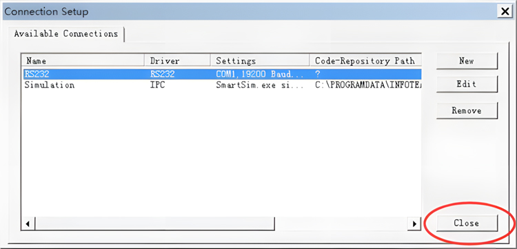 7、设置好后,返回Connection Setup(连接设置)界面,点击“Close(关闭)”