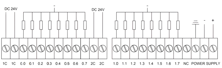 图2.4 GCAN-PLC-326E/R系列的DI端子排接口样式