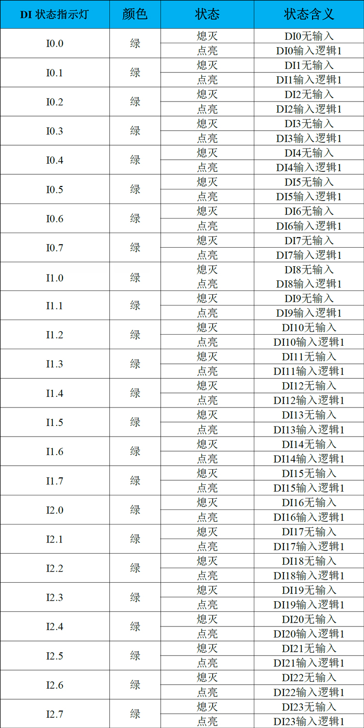 表2.6 GCAN-PLC-326E/R系列DI指示灯定义
