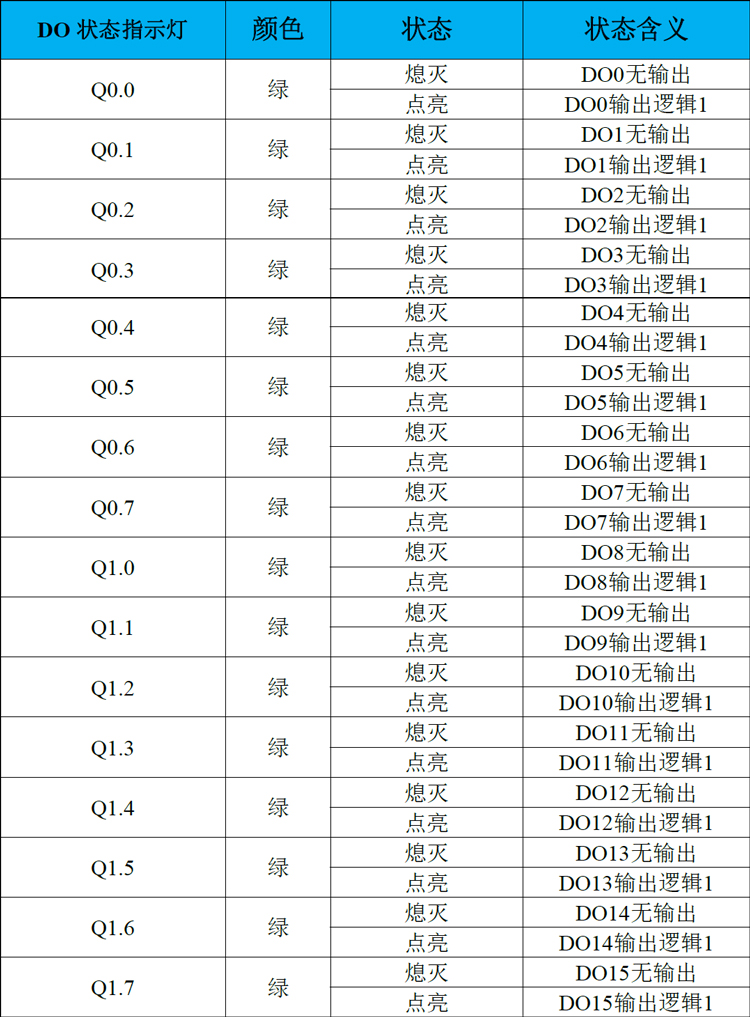 表2.7 GCAN-PLC-326E/R系列DO指示灯定义