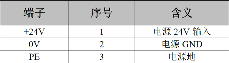 电源接口的3P端子接口,引脚定义如下图及下表。