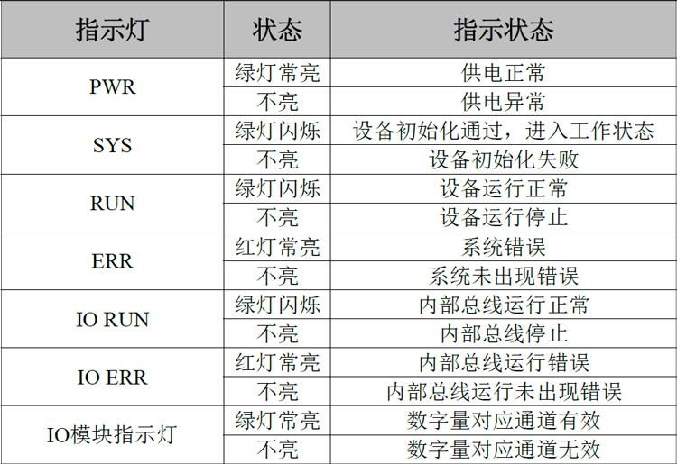 GCAN-PLC-301/302的IO模块未设置错误指示灯,请通过“IO RUN”和“IOERR”指示灯来判断IO模块的状态。若GCAN-PLC-301/302的“IO ERR”指示灯亮起,表示IO模块为不正常工作,请优先检查模块安装情况。