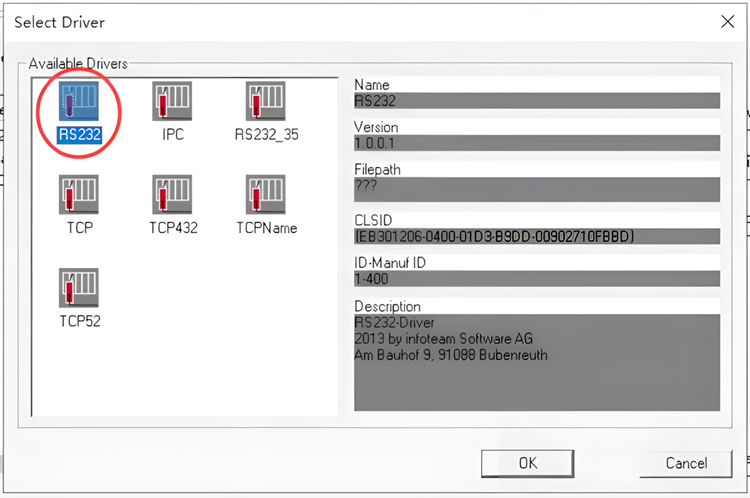 5、Driver 中会显示“RS232”字样,点击“Settings(设置)”按钮。