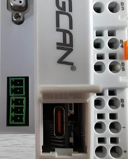 GCAN-PLC-320/321/322产品由一个可编程的主控模块(GCAN-PLC-320/321/322等)、若干GC系列IO模块(GC-1008、GC-3804等)以及一个终端电阻模块(GC-0001)组成。GCAN-PLC-320/321/322主控模块可连接所有的GC系列IO模块,用户可根据现场实际需求自行选择扩展IO模块,IO模块数量最多可扩展16个,主控模块可根据插入IO模块的前后位置自动分配地址,实现自动组态,用户无需在PC上创建组态界面及设置参数。