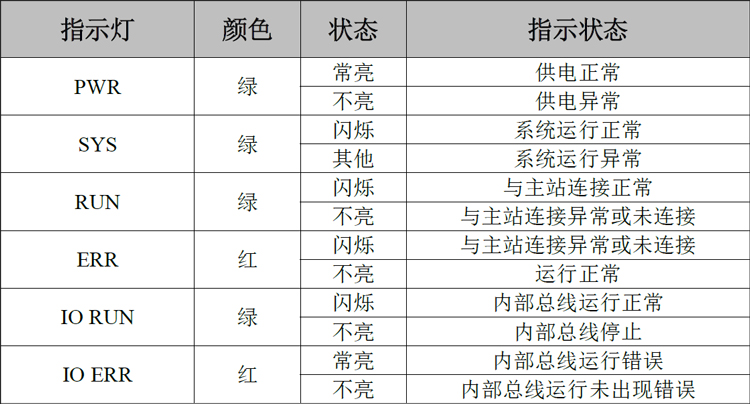 指示灯的具体指示、指示灯处于不同状态下时,GCAN-PLC-325模块状态如表2.3所示。